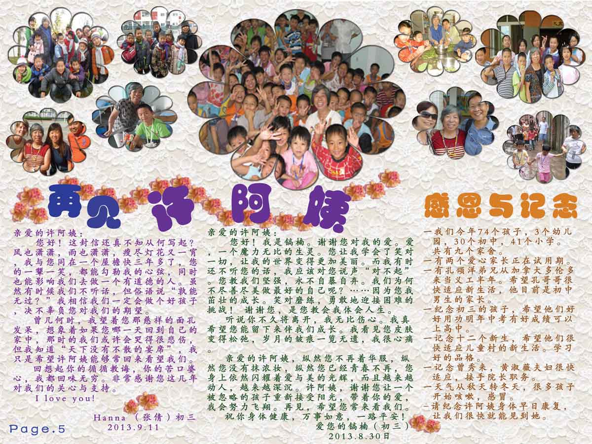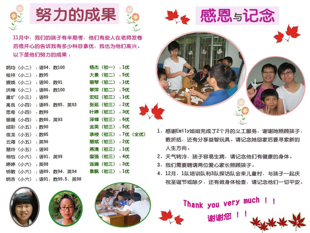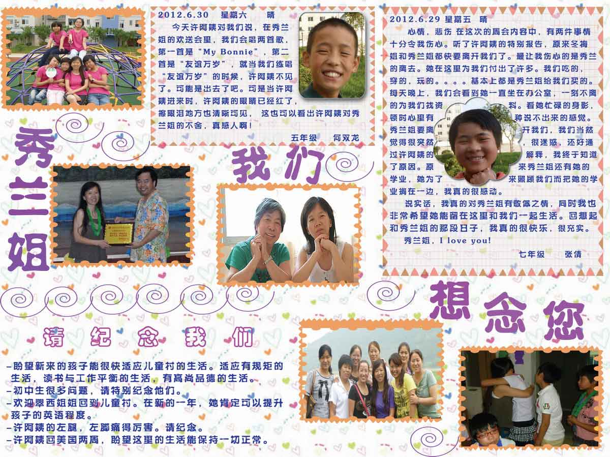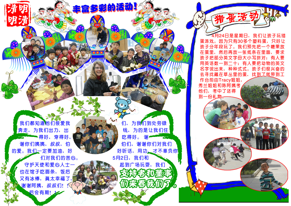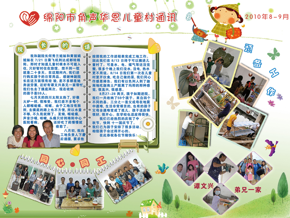 很對不起所有的朋友。因為人手不足,我們不能每個月都有通信。只可以盡我們的力量保持每一季向你們報導院裡的情況。我們很感恩有很多愛護我們的遠近的朋友。他們總會帶給孩子們很多的歡樂。遠在美國的姨姨叔叔,哥哥姐姐在暑期幫助孩子學習英語,還有很多有趣特別的活動...
