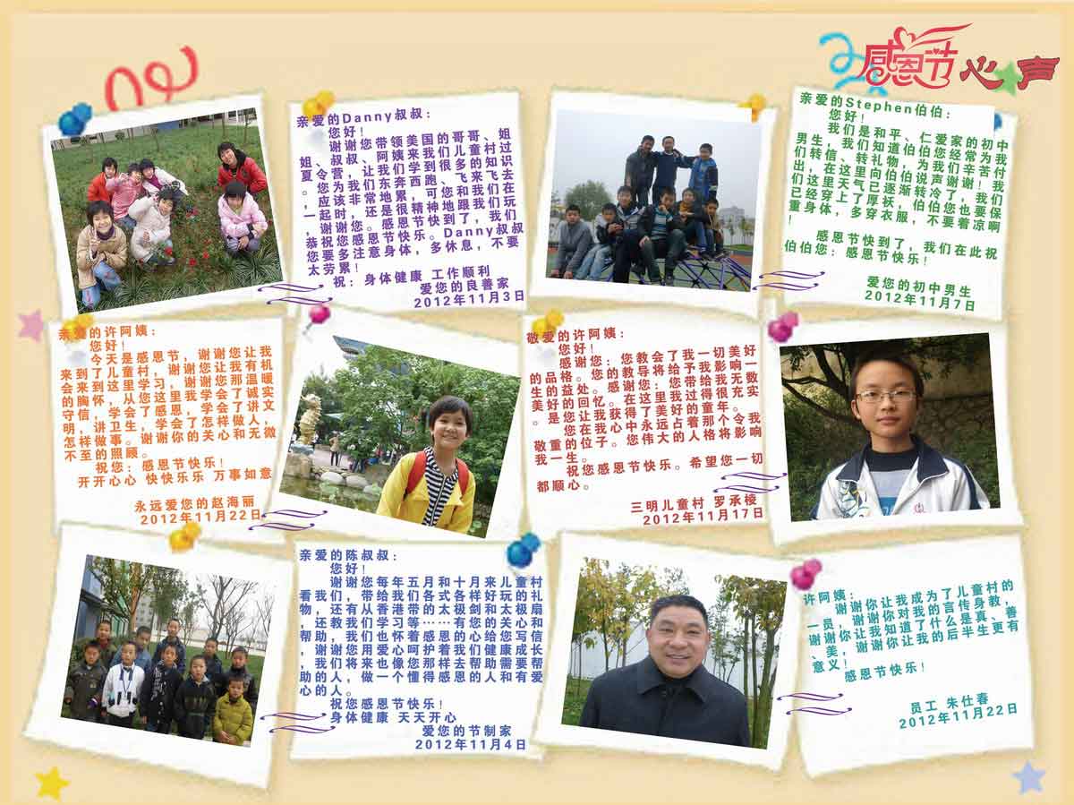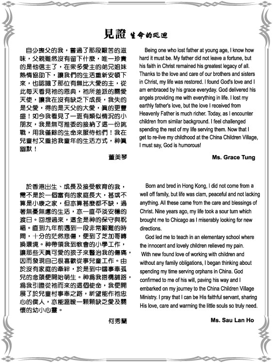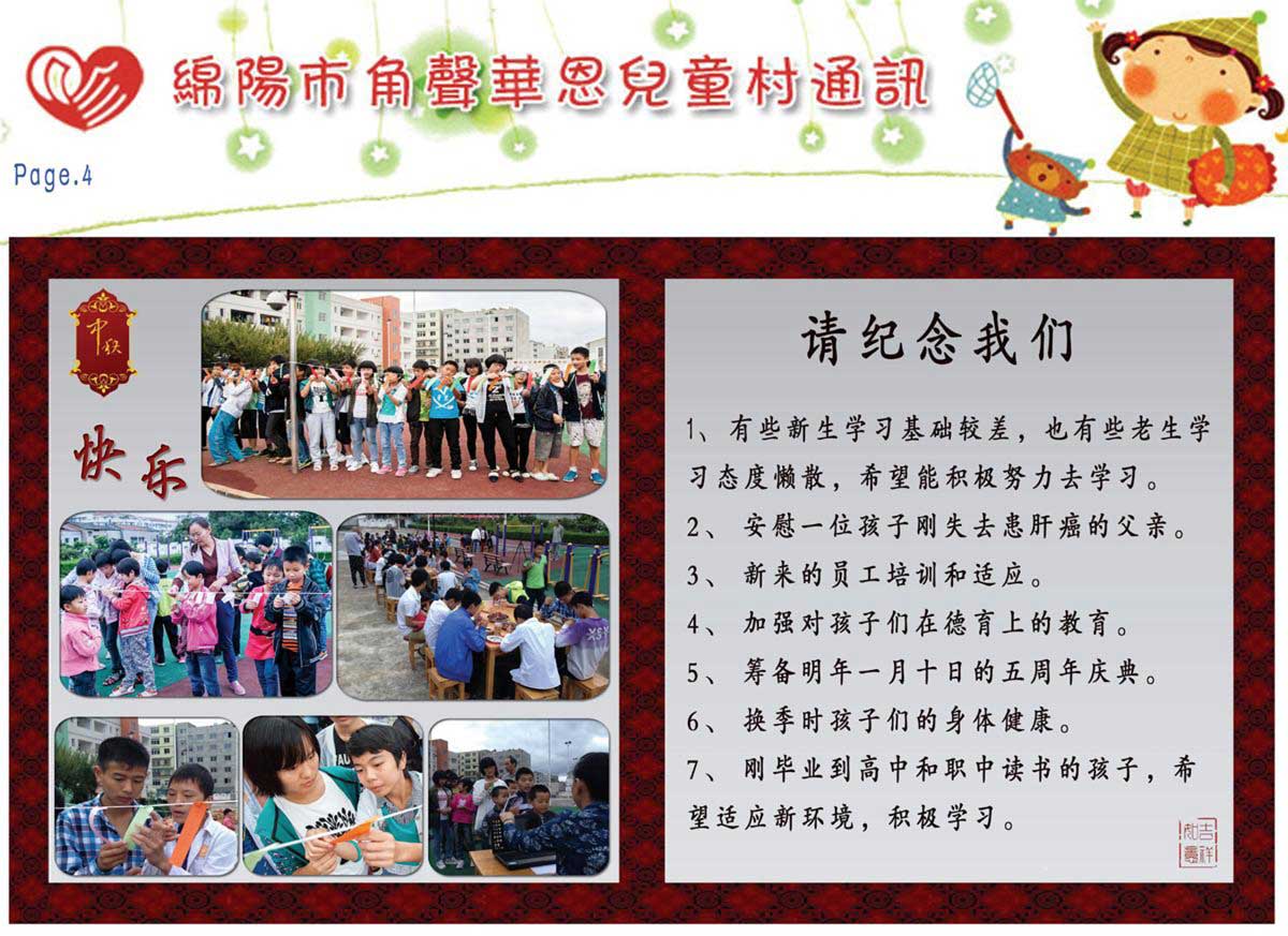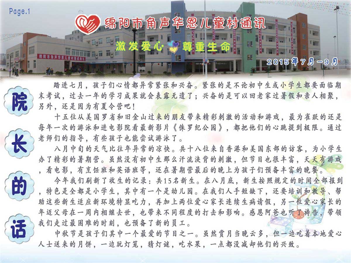 很對不起所有的朋友。因為人手不足,我們不能每個月都有通信。只可以盡我們的力量保持每一季向你們報導院裡的情況。我們很感恩有很多愛護我們的遠近的朋友。他們總會帶給孩子們很多的歡樂。遠在美國的姨姨叔叔,哥哥姐姐在暑期幫助孩子學習英語,還有很多有趣特別的活動...