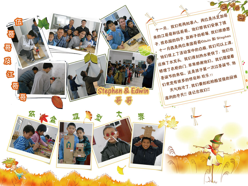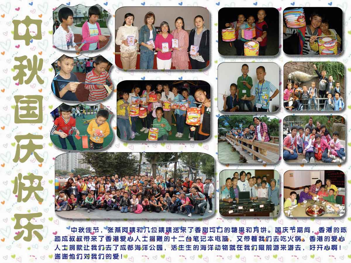 自八月底开学一直很忙。孩子们在努力赶上暑期落后的学习速度时,中秋节来临了。每个孩子特别喜欢中秋节,有漂亮好玩的灯笼,又有美味可口的新鲜水果和丰富的晚餐,再加上张燕阿姨和朋友们送来的月饼,让原本已近乎完美的“月圆夜”增添精彩!