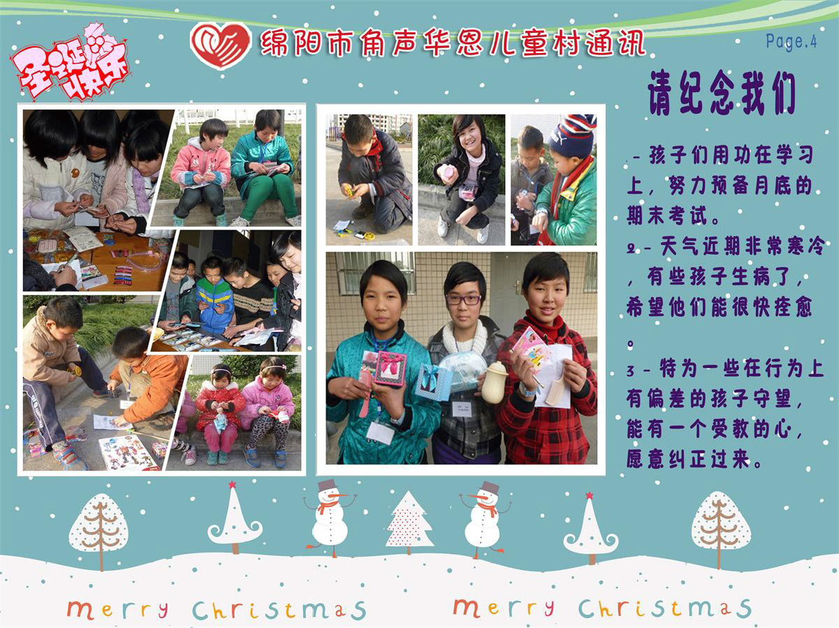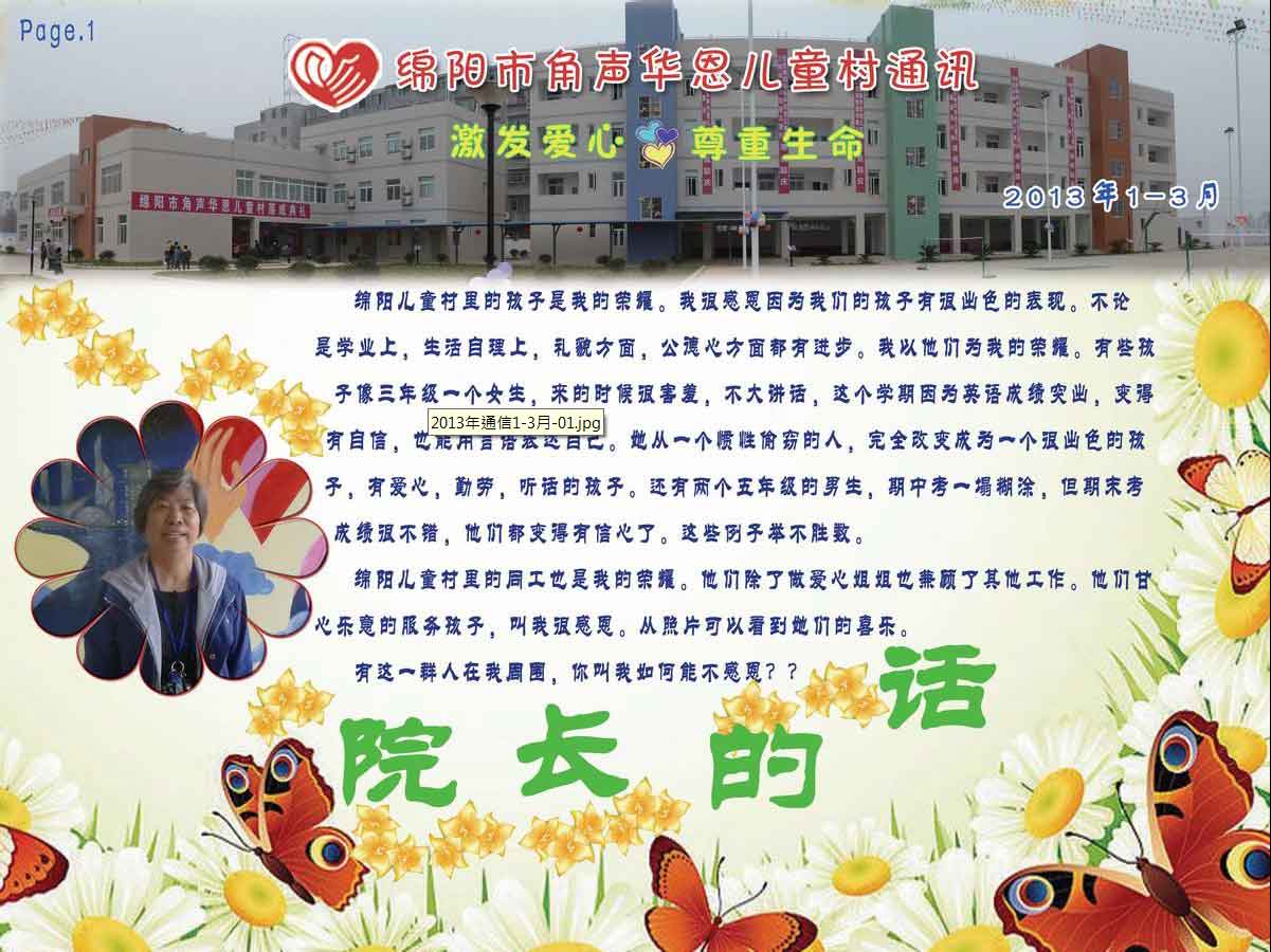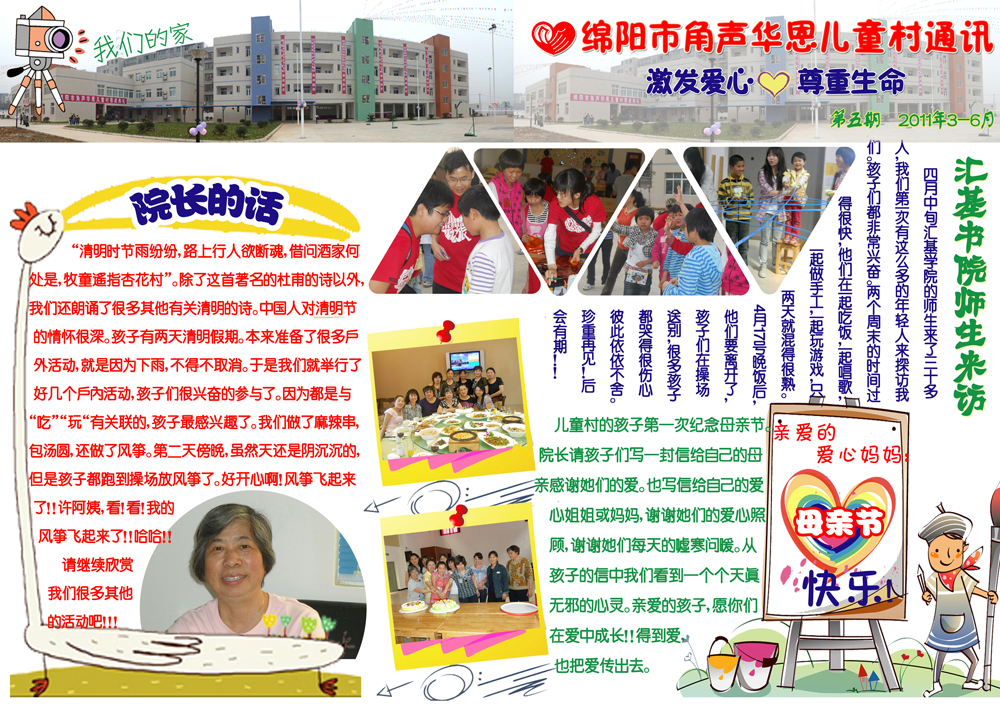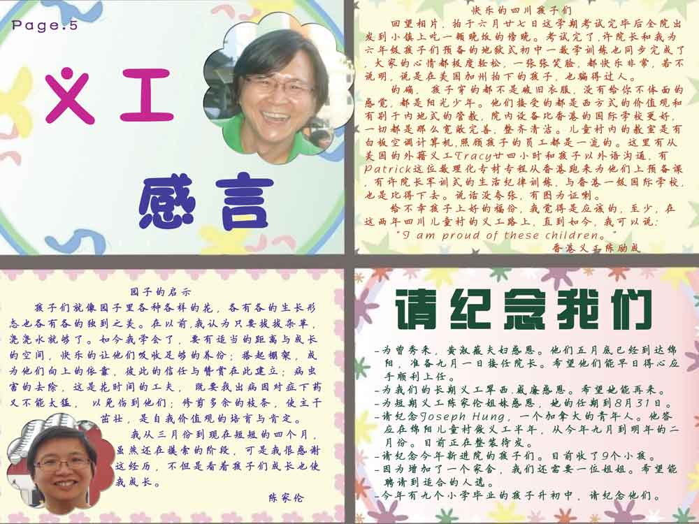綿陽兒童村里的孩子是我的榮耀。我很感恩因為我們的孩子有很出色的表現。不論是學業上,生活自理上,禮貌方面,公德心方面都有進步。我以他們為我的榮耀。有些孩子像三年級一個女生,來的時候很害羞,不太講話,這個學期因為英語成績突出,變得有自信...