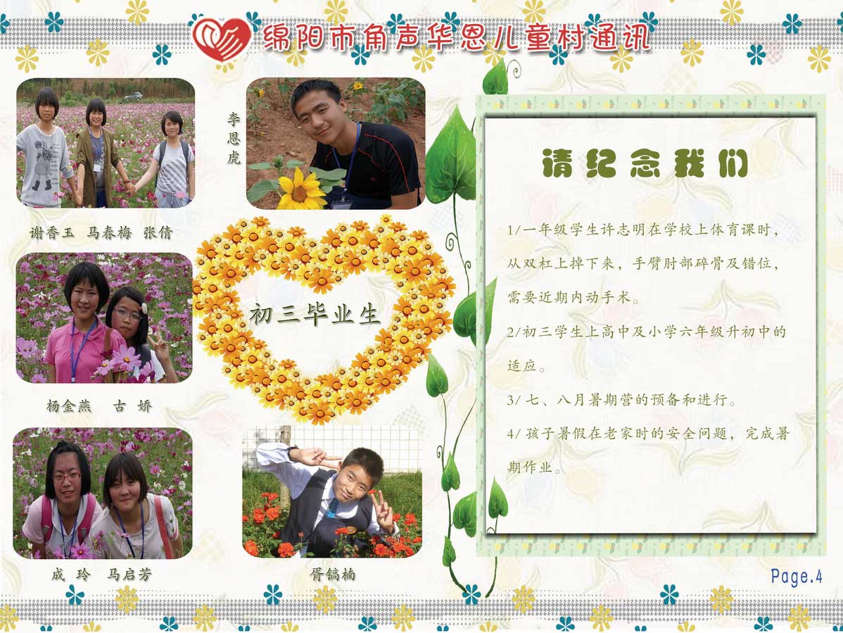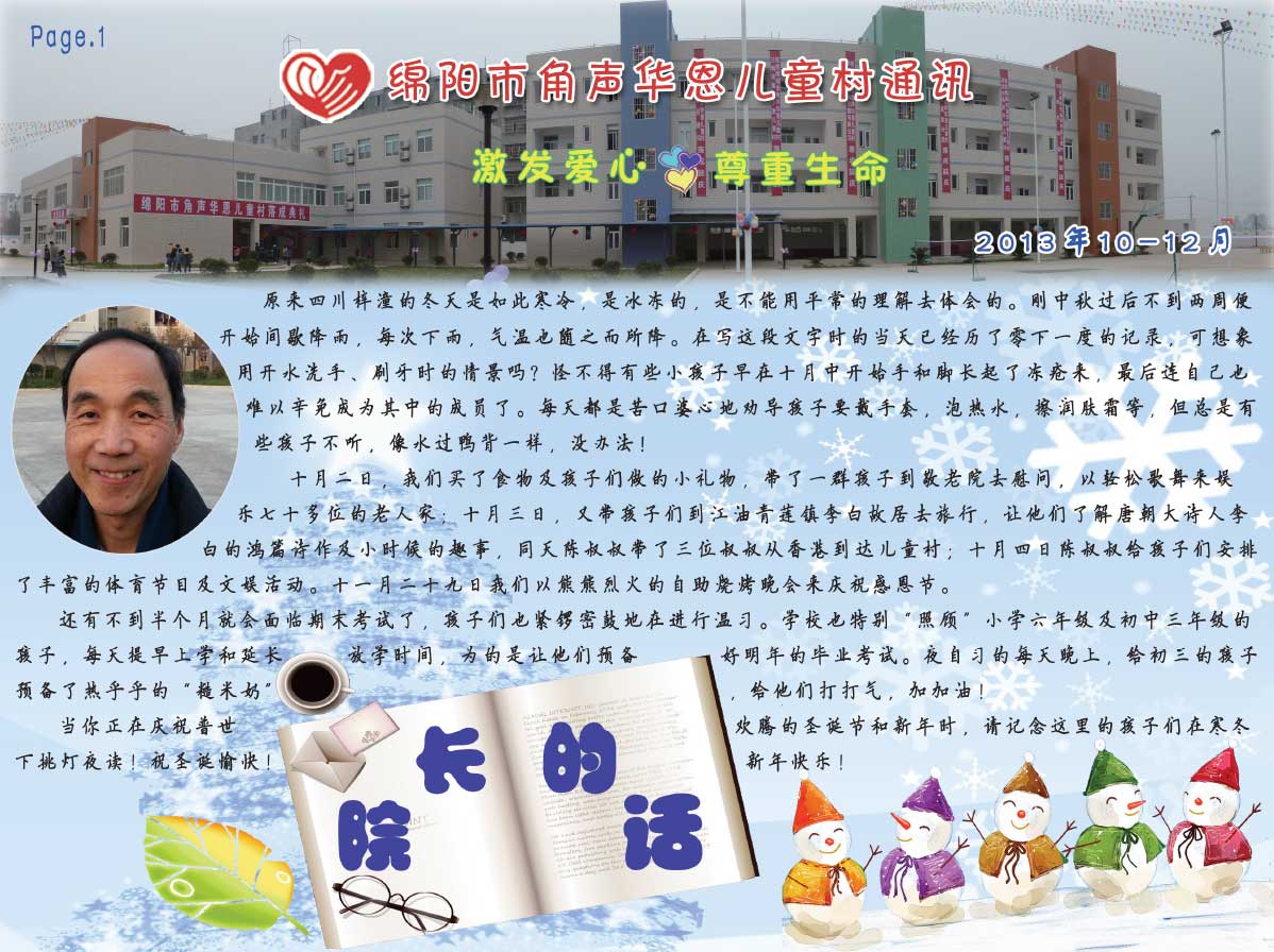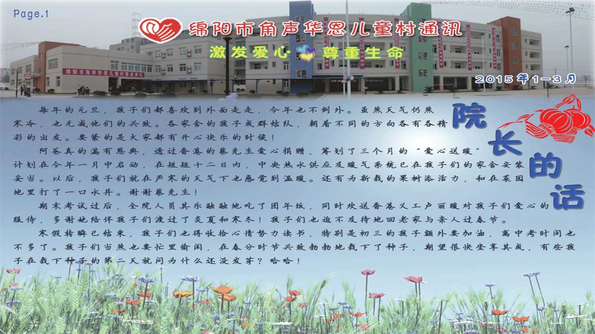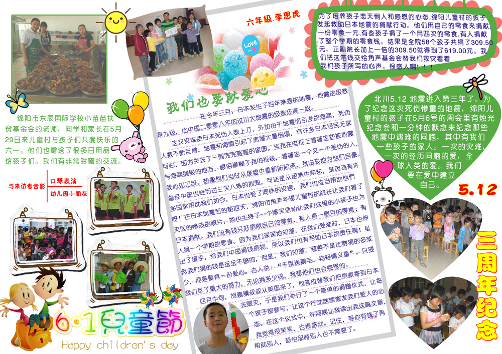 綿陽兒童村里的孩子是我的榮耀。我很感恩因為我們的孩子有很出色的表現。不論是學業上,生活自理上,禮貌方面,公德心方面都有進步。我以他們為我的榮耀。有些孩子像三年級一個女生,來的時候很害羞,不太講話,這個學期因為英語成績突出,變得有自信...